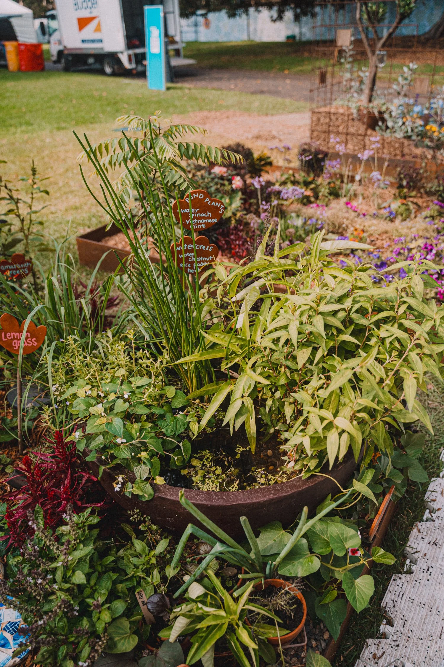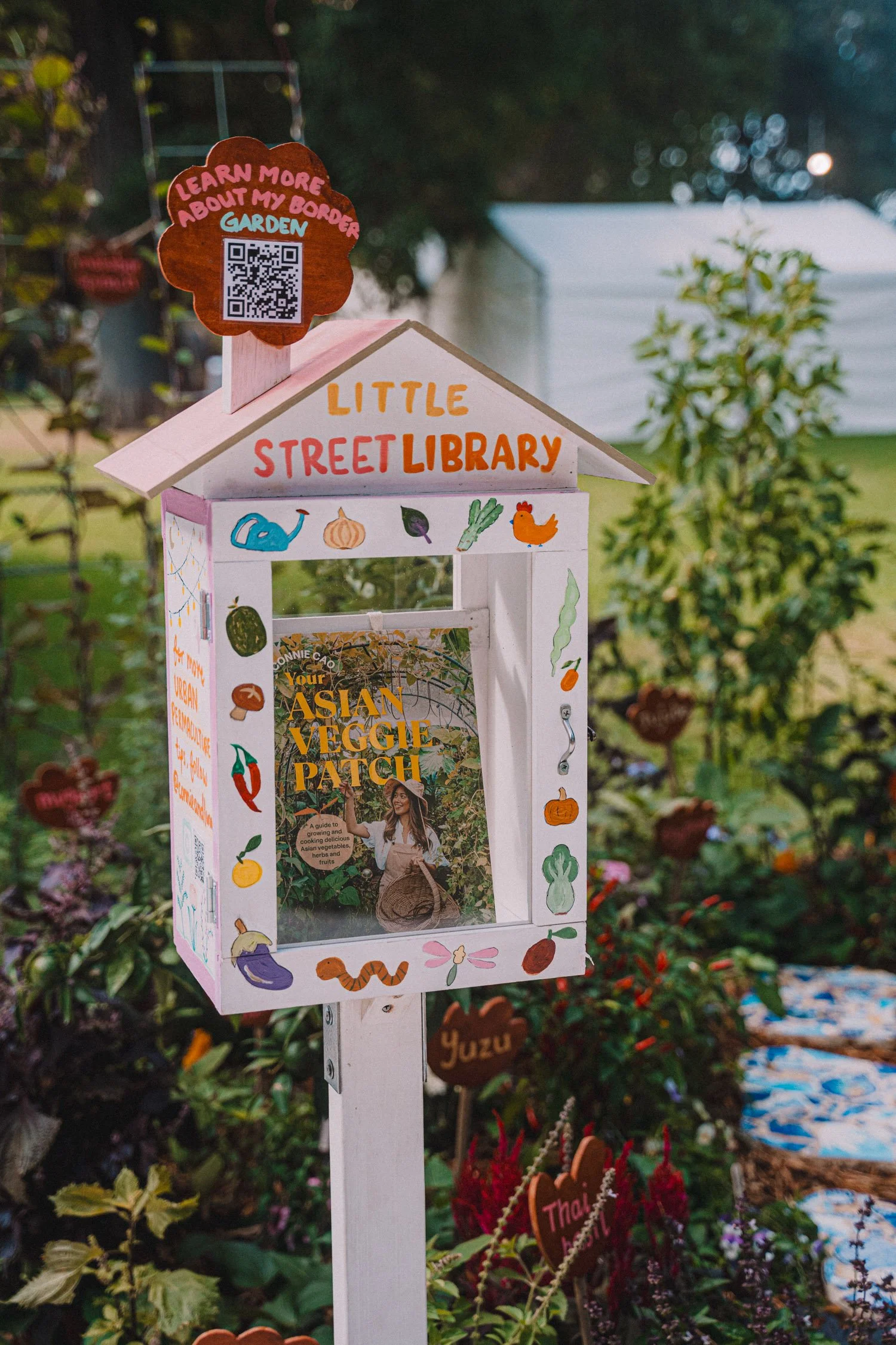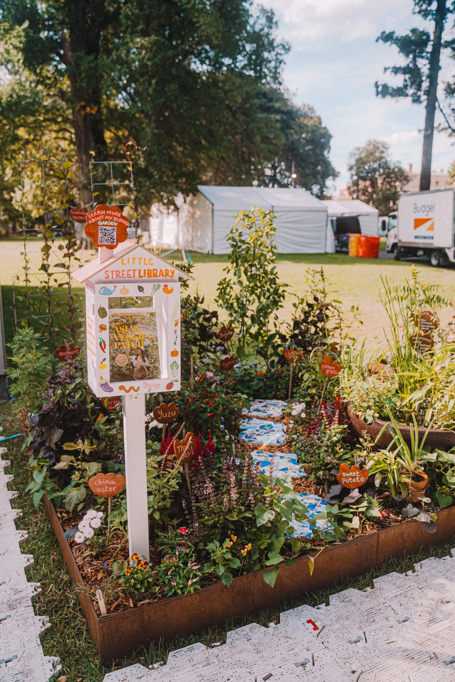 Permaculture in action: This Border Garden is only possible with the generous help of my community. With thanks to Ada, J, Jess, Jess, Lisa, Lorene, Rowena, Shane & Tom for all the ideas bouncing, graphic designing, bumping in, plant watering, netting, painting, woodworking, broken pot donating, hi-vis supplying, van driving, decision validating, to-do list co-ordinating and more. 💖